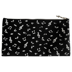 Music Notes Pencil Case, Rectangular - Black with White Symbols